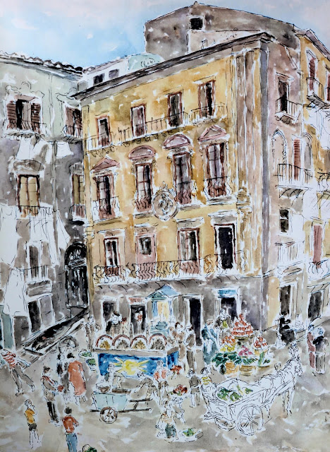 KATERINA WILCZYNSKI ( 1894-1986 ),"Venditori ambulanti a Palermo"